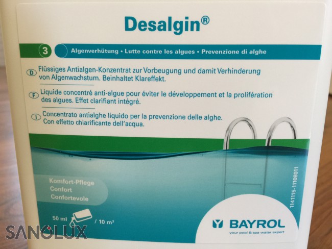 Desalgin Art. Nr. 021039 Flüssiges Algizidkonzentrat mit Breitbandeffekt gegen alle Algentypen. Mit Klareffekt. Besonders schaumarm, pH-neutral.