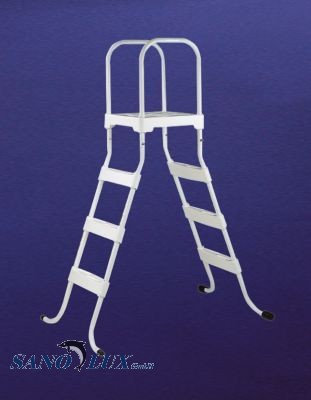 Schwimmbeckenleiter Basic mit Plattform, Holmdurchmesser 25mm Hochbeckenleiter aus Stahlrohr, Holme weiss beschichtet (max. Belastbarkeit der Leiter 100 kg)