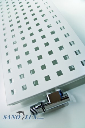 Eleganter Design Badheizkörper in drei Grössen und zwei Farben lieferbar. Mit- oder ohne Handtuchhalter ausgestattet. Anschluss ans Heizungsnetz. Kein rein elektrischer Betrieb möglich. Anschluss immer unten mittig (50 mm)