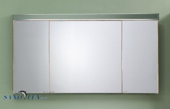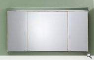 Grösse: 1200 x 600 x 136 mm 1 Aufbauleuchte 28 Watt 3 Türen beidseitig verspiegelt je 300mm/600mm/300mm breit 4 Glaseinlegeböden 1 Mittelwand 1 Schalter/Steckdosenelement mit CH- Stecker Farbe: Pinie Abbildung