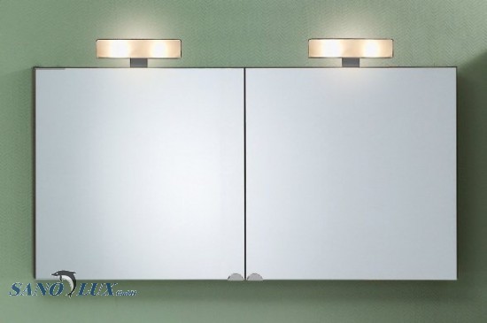 Grösse: 1200 x 625 x 136 2 Aufbauleuchten je 2 x 20 Watt 3 Türen beidseitig verspiegelt je 300mm/600mm/300mm breit 4 Glaseinlegeböden 1 Mittelwand 1 Schleter/Steckdosenelement mit CH- Stecker