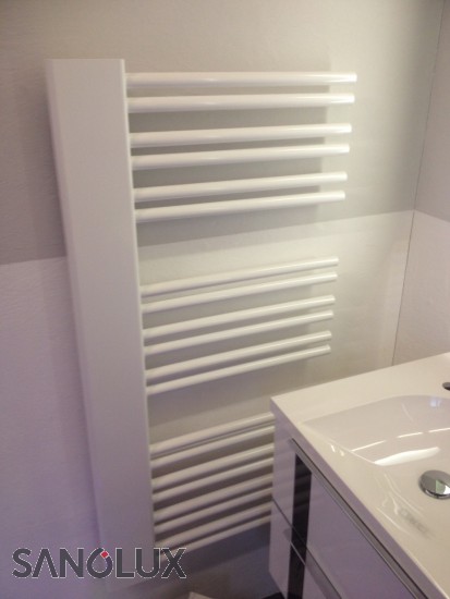 Softcube Plus Design Badheizkörper (Abbildung nach rechts öffnend) Die hochwertige Doppelrohr-Paare des Softcube Plus erzeugen wohnliche Temperaturen und angenehm warme Handtücher. Zwei grosse Zwischnräume bieten Platz zum Aufhängen und Trocknen. Lieferbar in 2 Grössen und in 2 Farben angegebener Preis für 1610 x 610 mm in weiss Preis für anthrazit Fr.1580.00