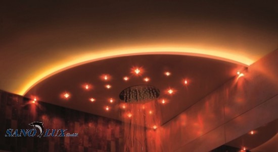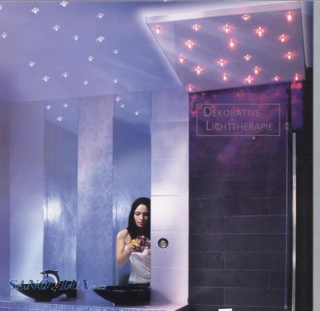 Einzigartig vormontiertes Deckenpaneel mit Regenbrause in 5 Formen und in 10 Grössen mit 20 bezw.40 Lichtpunkten ausgestattet mit 5 verschiedenen Lichtkristallen ! Regenbrause rund oder qudratisch 30 x 30 cm (bei Bestellung vermerken) Einfache Montage mit vorgefertigen Montagen-Anschlüssen an Ecken 230 Volt Elektroanschluss erforderlich Bedienung mittels Fernbedienung Paneel zum Aufsetzen an fertige Decken oder zum Versenken in Decke geeignet für Bader, Küchen, Wohnzimmer, Wellnessraum usw. Preis gilt für Paneelen in jeder Grösse mit 20 Lichtpunkten! Preis mit 40 Lichtpunkten Fr.2399.00