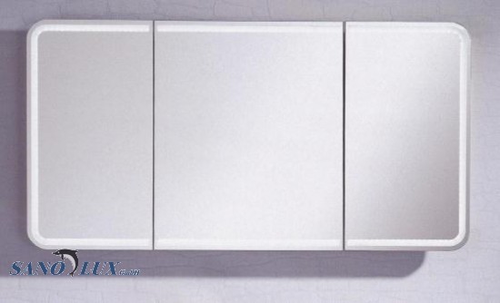 Grösse: 1200 x 735 x 136 cm Farbe: weiss 3 Spiegeltüren mit LED-Beleuchtung (je 300/600/300 mm breit) 6 Glaseinlegeböden 2 Mittelwände 1 Schalter Steckdosenelement CH-Ausführung