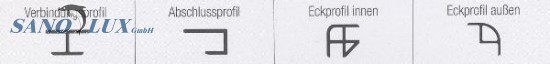 1. Verbindungsprofil Breite 1.5 cm. Verbindet zwei ArtWall Wandpaneele in gerader Flucht. Länge 260 cm Fr. 57.00 2. Zur Abdeckung der seitlicheh Schnittkanten erforderlich. Bei Wandpaneelen bis Oberkante Duschtür zur Abdedckung der oberennittkante notwendig. Länge 260 cm Fr. 57.00 3. Verbindet zwei ArtWall Wandpaneele über Eck. Länge 260 cm Fr. 74.50 4. Verbindet zwei ArtWall Wandpaneele über Eck. Länge 260 cm Fr. 57.00 5. ArtWall Flächenkleber: 1 Stück Inhalt ca. 600 Gramm. Pro m2 ist 1 Stück Kleber erforderlich Fr.57.00 Geeignet zur Anwendung auf Fliessen,Beton,Gips- und Zmentputze, Gipskarton- und Gipsfaserplatten, Holz und Metal