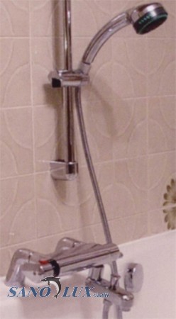 Thermostatbatterie 1/2" mit Verbrühschutz und Sicherheitssperre Wanneneinlauf schwenkbar um 180 Grad 2 separate Bedienventile Multifunktionsdusche mit Handbrauseschlauch und Duschkopf 2 verchromte Anschlusswinkel für den Wannenrandeinbau