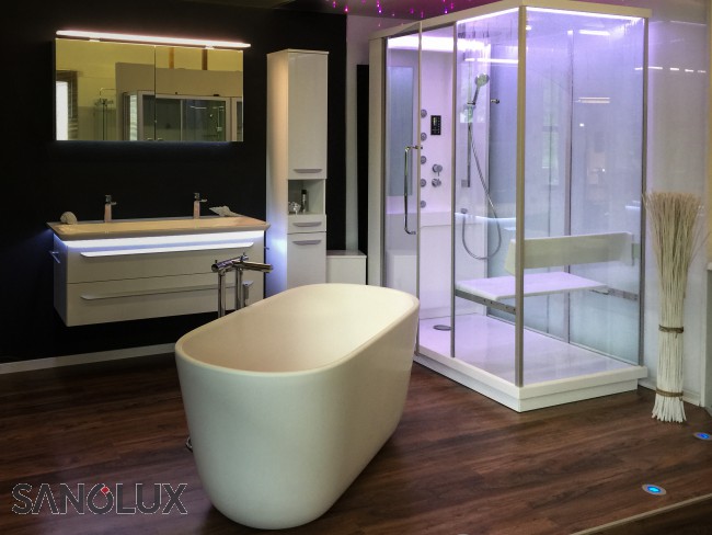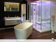 Die exklusive Dampfduschkabine mit Duschwanne und Rückwand aus samtiger Xonyx-Steinmasse - Qualität die man fühlt. Konzipiert für 2 Personen lässt sich die Kabine in allen Varianten in den Raum stellen - mit Glasrückwand sogar freistehend im Raum. Schlanke Profile und eine indirekte LED-Beleuchtung mit sanften Farbübergängen tragen zum modernen und leichten Erscheinungsbild bei. Das Hydromassagesystem mit vorprogrammierten Therapiesequenzen sorgt für ein unvergleichliches Duscherlebnis. Ausstattung TETRIS: