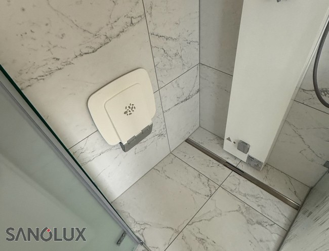 Duschklappsitz grau/chromDer Duschklappsitz der Serie 300 wurde nach höchsten TÜV und CE Richtlinien entwickelt und getestet. Die Materialien bestehen vorwiegend aus Aluminium und hochwertigem Kunststoff - eine ausgeklügelte Scharniertechnik gewährleistet exzellente Belastbarkeit von 160 kg und in der aufgeklappten Version wird ein maximaler Duschbereich gewährleistet. Der Duschklappsitz |