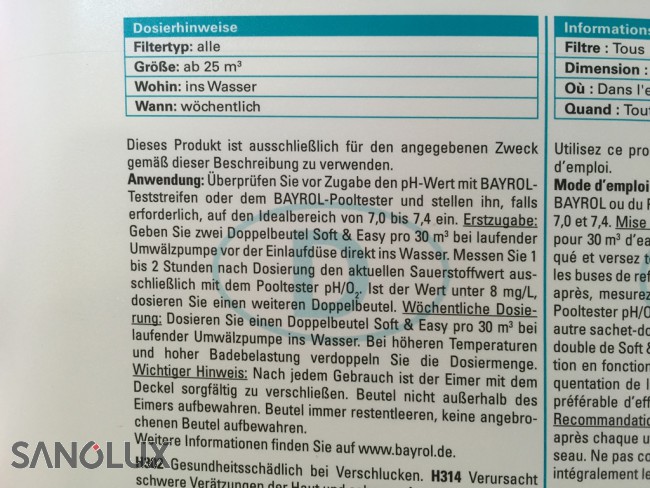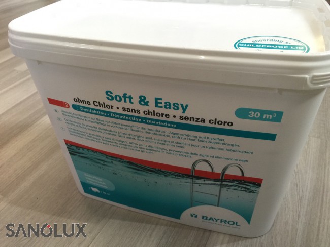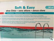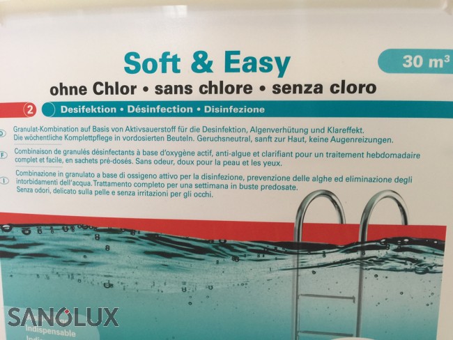 Soft & Easy ist die chlorfreie Alternative für die Desinfektion von Poolwasser. Die Granulat-Kombination auf Basis von Aktivsauerstoff sowie Algizid bildet einen Synergieeffekt, und sorgt so für eine zuverlässige Desinfektion und Verhinderung von Algenwachstum. Zusätzlich enthält Soft & Easy einen Klareffekt, der das Poolwasser noch brillanter macht. Soft & Easy ist geruchsneutral, sanft zur Haut und vermeidet Augenreizungen. Der bereits vorportionierte Doppelbeutel pflegt das Wasser für eine Woche, und macht die Dosierung denkbar einfach. für 30 m³: Verkaufseinheit: 5,04 kg Karton mit 12 Doppelbeuteln