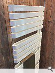 Der WARP S besticht durch seine kraftvolle Heizleistung und dem einfachen Einfädeln der Handtücher von der Seite, wahlweise von links oder von rechts. Die flachen Profile lassen den Heizkörper modern und elegant in Ihrem Bad wirken. Stecker- und montagefertig ausgestattet mit dem Heizeinsatz KTX-3. Inkl. Montagematerial wie Konsolen, Schrauben, Dübel... Der Elektro-Heizeinsatz KTX-3 überzeugt durch seine moderne, schlichte Optik und die Möglichkeit, bis zu 4 Zeitzonen am Tag zu programmieren. Die Handtuch-Trocknungsfunktion (30 - 240 Min.) bietet zusätzlichen Komfort. Gefrierschutz und Sicherheitsfunktionen inklusive. Masse: 1695 x 600 x 112-120 mm (HxBxT) Anordnung/Öffnung: Der Heizkörper kann links oder rechts öffnend bestellt werden (Bitte bei Bestellvorgang unter Mitteilungen angeben) Farbe: weiss (RAL 9016) Heizeinsatz: KTX-3 mit 1000 Watt Heizleistung, unten eingebaut. Farbe weiss 1.5m Kabel mit CH-Stecker > Der Heizkörper ist auch noch in anderen Grössen verfügbar, fragen Sie uns an.