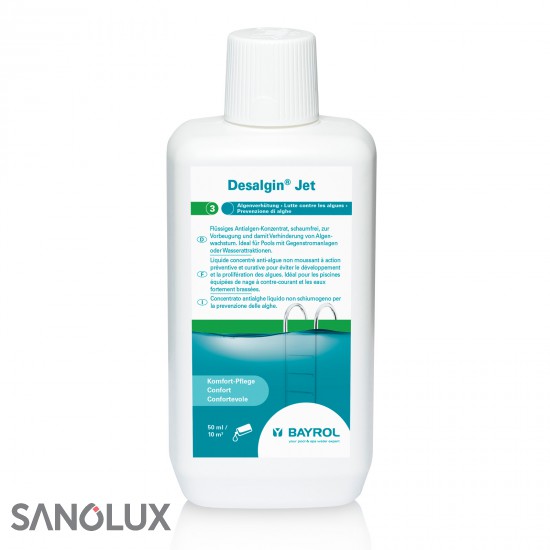 Desalgin® Jet ist ein schaumfreies, flüssiges Antialgen-Konzentrat zur Vorbeugung und damit Verhinderung von Algenwachstum. Zusätzlich enthält Desalgin® Jet einen Klareffekt, der Ihr Poolwasser noch brillanter macht. Desalgin® Jet ist ideal für Pools mit Gegenstromanlagen oder Wasserattraktionen geeignet. Geben Sie 50 ml pro 10 m³ einmal pro Woche zu. Inhalt: 1 Liter Dosierhinweise: Filtertyp: alle Größe: alle Wohin: direkt ins Wasser Wann: einmal pro Woche