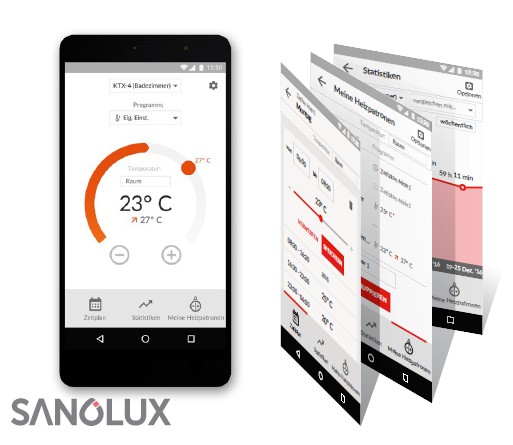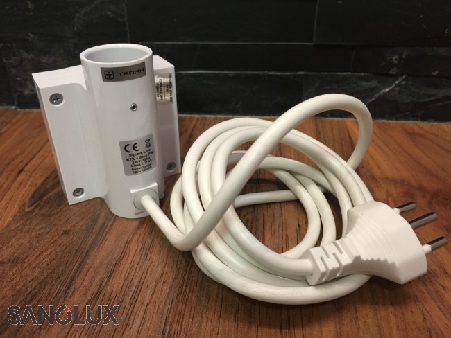 Dank der neuen KTX 4 Blue Heizkörpersteuerung können nun auch Sie Ihren Badheizkörper auf modernste Weise bedienen, ganz einfach über Ihr Smartphone oder Tablet. Programmieren Sie im Handumdrehen verschiedene Heizzeiten für jeden einzelnen Tag in der Woche und nutzen Sie den Betriebszeitenzähler für die Kontrolle der verbrauchten Energiemenge. Bestehend aus: 1 x Steuerung KTX-4 Blue, Gehäusefarbe: weiss >> ohne Heizstab, es wird nur die reine Steuerung geliefert, z.B. für den Austausch einer bestehenden KTX-3 oder KTX-4 Steuerung. Technische Daten: Stromversorgung: 230 V / 50 Hz Kabellänge: 2m mit CH-Netzstecker Gehäuseschutzstufe [IP]: IPx5 Funktionalität: Die Heizpatrone kann vollständig über die Steuerungs– App «Terma BlueLine» gesteuert werden. Dank dieser App kann man sowohl die Heizkörpertemperatur (30 – 60°C), als auch die Raumtemperatur (15 – 30°C) kontrollieren. Oder man programmiert eine beliebige Anzahl Programme (7 – Tagesplan) für den Betrieb des Gerätes. Ausserdem steht eine erweiterte Timerfunktion zur Verfügung. Die Tasten am Gehäuse ermöglichen eine einfache Einstellung der Arbeitstemperatur und eine einfache Aktivierung der Boosterfunktion, welche bis zu 4 Stunden dauern kann. Das Gerät zeigt das aktuell von Ihnen eingestellte Temperaturniveau und den Status von Heiz- und Ruhephase an. Die neue KTX 4 Blue besitzt ausserdem einen Echtzeit – Zähler, um die tatsächliche Heizzeit zu bestimmen. Dieser kann für eine bessere Kontrolle der Energiemenge verwendet werden. Timer (Boosterbetrieb): Die erweiterte Timer – Funktion schaltet die Heizpatrone automatisch nach 1, 2, 3 oder 4 Stunden ab. Fernsteuerungs-App: Die Heizpatrone bietet die Möglichkeit für eine Bluetooth – Kommunikation mit der erwähnten Steuerungs – App, welche die Heizpatrone um weitere Funktionen erweitert. Die Steuerungs – App „Terma BlueLine“ kann kostenfrei über den Play – Store (Android) oder Apple – Store (IOS) heruntergeladen werden. Sicherheit: Im Falle eines Stromausfalls speichert die Heizpatrone die von Ihnen aktuell verordnete Einstellung. Sie besitzt ausserdem einen doppelten Schutz gegen Überhitzung und eine Frostschutz-Funktion. Falls es zu Betriebsstörungen kommt, werden auch diese angezeigt. Design: Die blaue LED – Anzeige ist einstellig und gut lesbar. Erhältlich ist die KTX 4 Blue in Weiss, Chrom und Schwarz matt. Terma BlueLine App Die KTX 4 Blue verwendet die moderne Technologie «Bluetooth Low Energy». Sie ermöglicht ein intuitives Hinzufügen und Verwalten von Heizgeräten der "Terma BLUELine" per App. Sie ist verfügbar für alle Mobilgeräte mit Android – System ab Version 4.0 oder IOS ab Version 6. Dank dieser App können mehrere Heizgeräte zur gleichen Zeit verwaltet werden. Dazu ermöglicht sie die Erstellung eigener Arbeitspläne und ihre jederzeitige Aktivierung. Terma – Split Die intelligente Lösung des zweiteiligen Aufbaus ermöglicht Ihnen das Verbinden oder Trennen der Steuerung von Ihrem eingebauten Heizelement, damit Sie immer auf dem neusten Stand sein können, ohne dass dabei etwas beschädigt wird. Vorteile: - Einfache und sichere Eigenmontage - Jederzeit die Möglichkeit die Steuerung zu wechseln ohne Demontage des Heizelements. - Jederzeit die Möglichkeit die Steuerung zu entfernen, z.B. für Renovierungsarbeiten. - Die Möglichkeit den Winkel der Steuerung im Drehbereich von 340° beliebig zu verstellen, damit die Anzeige nach vorne zeigt.