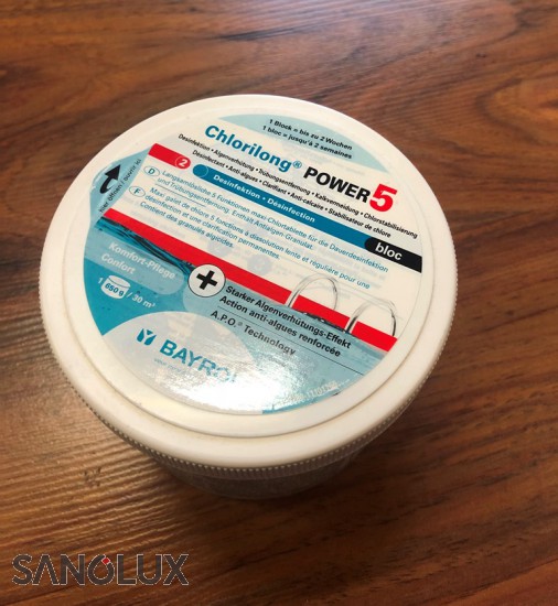 CHLORILONG POWER5 BLOC - Das geniale Kombiprodukt 3 in 1 - Desinfektion, Algenverhütung, Flockung (Ehemals Multibloc) Wasseraufbereitung in Windeseile: Deckel weg, Versiegelung weg, Dose in Skimmer legen – Fertig. Die Algizidkompenente ist oben als Granulat in der Dose eingefüllt. Die Versiegelung schützt vor dem Herausfallen dieser Granulatkörner. Die Etikettierung enthält eine aufklappbare, leicht verständliche Anleitung. Multibloc resp. Multibloc Mini enthält alle notwendigen Substanzen zur kompletten Schwimmbadwasserpflege (Desinfektion mit langsamlöslichem Chlor, Algenverhütung schaumfrei, Trübungsentfernung mit Flockungsmittel). Nur für Pools mit AFM/Sandfilter.
