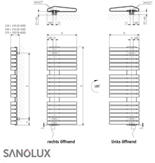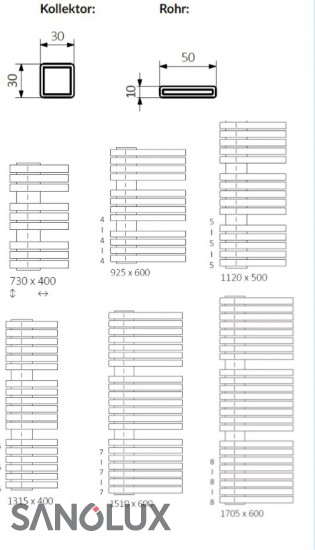SANOLUX Design-Badheizkörper IRON S mit rein elektrischem Betrieb. Symmetrische Flachrohre sorgen für eine hohe Heizleistung und ein modernes, unverwechselbares Design. Für den Anschluss an das Heizungsnetz, im Mischbetrieb oder wie in diesem Angebot als rein elektrische Version verfügbar: - Anschlüsse 1/2" IG - inkl. Befestigungssatz - Elektroversion steck-/montagefertig abgefüllt Grösse: [ ] 700 mm [ ] 925 mm [ ] 1120 mm [X] 1315 mm [ ] 1510 mm [ ] 1705 mm Breite: [ ] 400 mm [ ] 500 mm [X] 600 mm Farbe: [X] Weiss oder Metallic Black (beim Bestellvorgang unter Mitteilung angeben) [ ] Chrom [ ] RAL-Farben Aufpreis 100.- Ausrichtung: (beim Bestellvorgang unter Mitteilung angeben) [ ] rechts öffnend [ ] links öffnend Steuerung: [ ] MEG.1 [ ] SDY [X] KTX-3 [ ] KTX-4 mit IR-Fernregler [ ] KTX-4 Bluet (Bluetooth-Verbindung mit Smartdevice-App) Heizleistung: [ ] 300 Watt [ ] 400 Watt [ ] 600 Watt [X] 1000 Watt Der Elektro-Heizeinsatz KTX-3 überzeugt ebenso durch seine moderne, schlichte Optik und die Möglichkeit, bis zu 4 Zeitzonen am Tag zu programmieren. Die Handtuch-Trocknungsfunktion (30 - 240 Min.) bietet zusätzlichen Komfort. Gefrierschutz und Sicherheitsfunktionen inklusive. Die Steuerung verfügt über 2m Kabel mit Schweizer Stecker und hat ein weisses oder schwarzes Gehäuse. Diverse andere Ausführungen/Kombinationen ebenfalls erhältlich. Fragen Sie uns an und verlangen Sie unsere Preisliste: www.sanolux.ch/katalog - Bilder zeigen verschiedene Grössen und Farben -