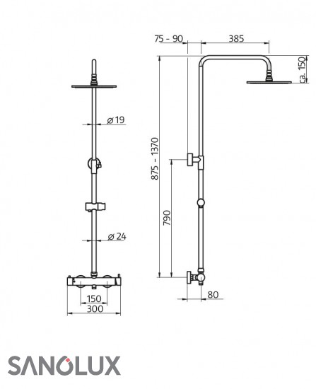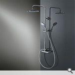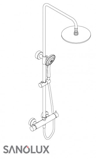 RS 200 Mix mit Einhand-Hebelmischer · Oberfläche Chrom · Einhand-Hebelmischer Rund, mit integriertem Funktionsumsteller · Kopfbrause Rund, flach, ∅ 250 mm; Höhe 8 mm, schwenkbar · Höhe der Kopfbrause individuell justierbar · Antikalk-Noppen · Separate Design-Handbrause Rund, mit 3 Strahlarten: · Rain · SoftRain · Massage · Brauseschlauch 1,5 m, Silber, mit beidseitiger Verdrehsicherung · Höhenverstellbare Halterung an der Brausestange Standardmässig mit Kopfbrause Rund, flach, ∅ 250 mm; Höhe 8 mm Es sind noch weitere Ausführungen erhältlich. Fordern Sie unseren Katalog an: www.sanolux.ch/katalog