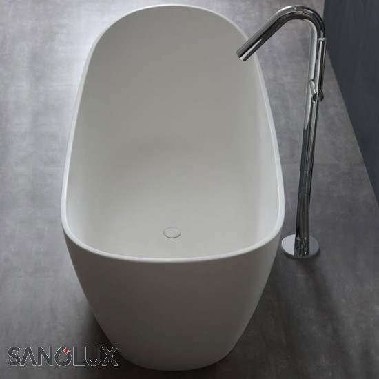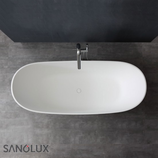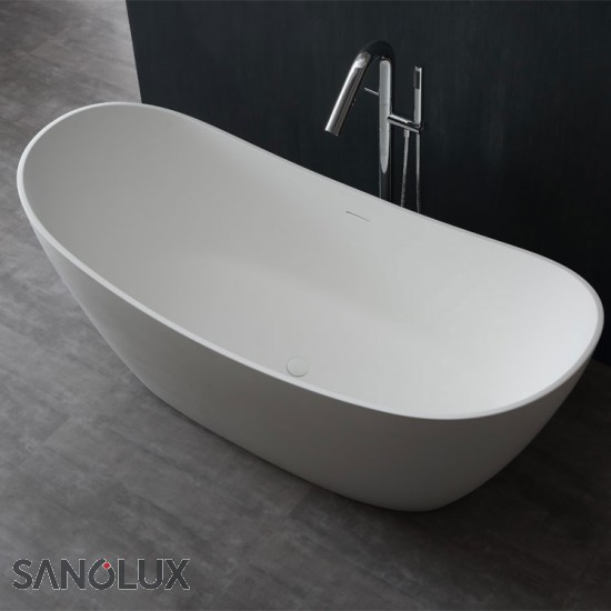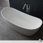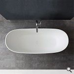 Grösse (LxBxH): 185 x 78.5 x 70 cm Gewicht (ohne Wasser): 156 kg Wasservolumen: 306 l Variante: [ ] weiss matt [ ] weiss glänzend Bitte bei Bestellung angeben. Ausführung: [X] freistehend [ ] Wand-/Eckanschluss Material Unser Anspruch ist Top Design bei höchster Qualität. Deshalb verwenden wir bei unseren Mineralgussprodukten auch im Kern ausschliesslich vollständig durchgefärbtes Material (Solid Stone). Matt oder glänzend Es werden zwei unterschiedliche Produktionsverfahren eingesetzt. Unser Ziel ist es, in beiden Versionen die beste Qualität zu liefern, was technisch möglich ist. Bei der matten Version wird ausschliesslich Solid Stone verwendet. Hierdurch wird ein echtes Stone-Feeling erzeugt. Das Material wirkt nicht nur natürlich, sondern ist es auch. Beschädigungen lassen sich auch nach vielen Jahren problemlos selber reparieren. Bei der glänzenden Version kommt ein zusätzliches Coating (Glasur/Beschichtung) der Oberfläche zum Einsatz. Dieses ist widerstandsfähig und robust, wodurch die Mineralgusswanne optimal geschützt wird. Durch dieses eigens entwickeltes Verfahren der Beschichtung reflektiert auch die glänzende Version nur geringfügig, wodurch auch hier ein sehr gutes "Stone-Feeling" erreicht wird. Das Produkt wirkt damit natürlicher als normal glänzender Mineralguss oder Keramik. Am Anfang steht das Design Bei der Entwicklung jeder unserer Mineralgussbadewannen steht das Streben nach dem perfekten Design am Anfang. Dabei gehen wir keinen Kompromiss ein. So bieten wir als einer der ganz wenigen Hersteller einen extra breiten Überlauf an. Das ist technisch zwar aufwendiger, aber optisch ergibt es eines von zahlreichen Details, mit denen sich unsere Mineralgussprodukte aus der Masse hervorheben. Abfluss und Siphon Wir liefern unsere freistehen Badewannen serienmässig inklusive Abfluss und Siphon aus. Passende Waschbecken Sie suchen ein passendes Waschbecken zu ihrer neuen Badewanne? Kein Problem, bei uns finden Sie genau das richtige Waschbecken ebenfalls in Mineralguss.