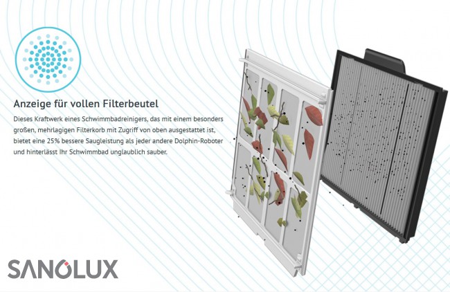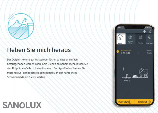 Die Kunden können mit Hilfe der neuen Cloud-vernetzten Stromversorgungseinheit eine Konnektivität rund um die Uhr geniessen. Dies bietet Ihnen eine fortschrittliche Steuerung, dynamischer Service sowie proaktive Benachrichtigungen. Steuern Sie Ihren Dolphin über die MyDolphin™ App! Sie können Modi auswählen, darüber Benachrichtigungen erhalten, einen Timer einstellen oder einen Zyklus wählen - Machen Sie Ihren Pool jederzeit und von überall perfekt.
