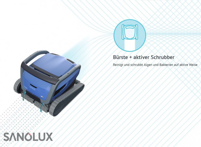 Dieser Poolroboter ist mit Kombi-Bürsten für alle Becken Oberflächen ausgestattet!