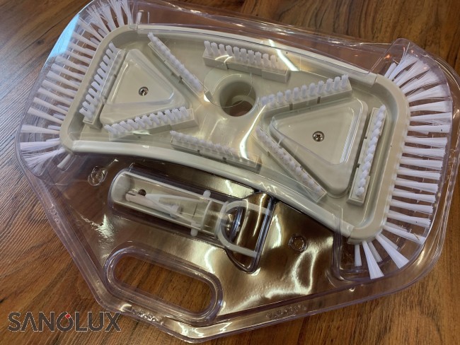 Bodensauger Deluxe weiss mit seitlichen Bürsten für einfache Reinigung des Schwimmbad-Bodens und der Ecken. Verfügt über einen 38mm Schlauch-Anschluss.