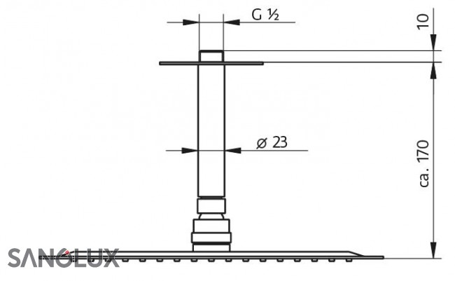 Deckearm mit Rosette und Regenbrause chrom: